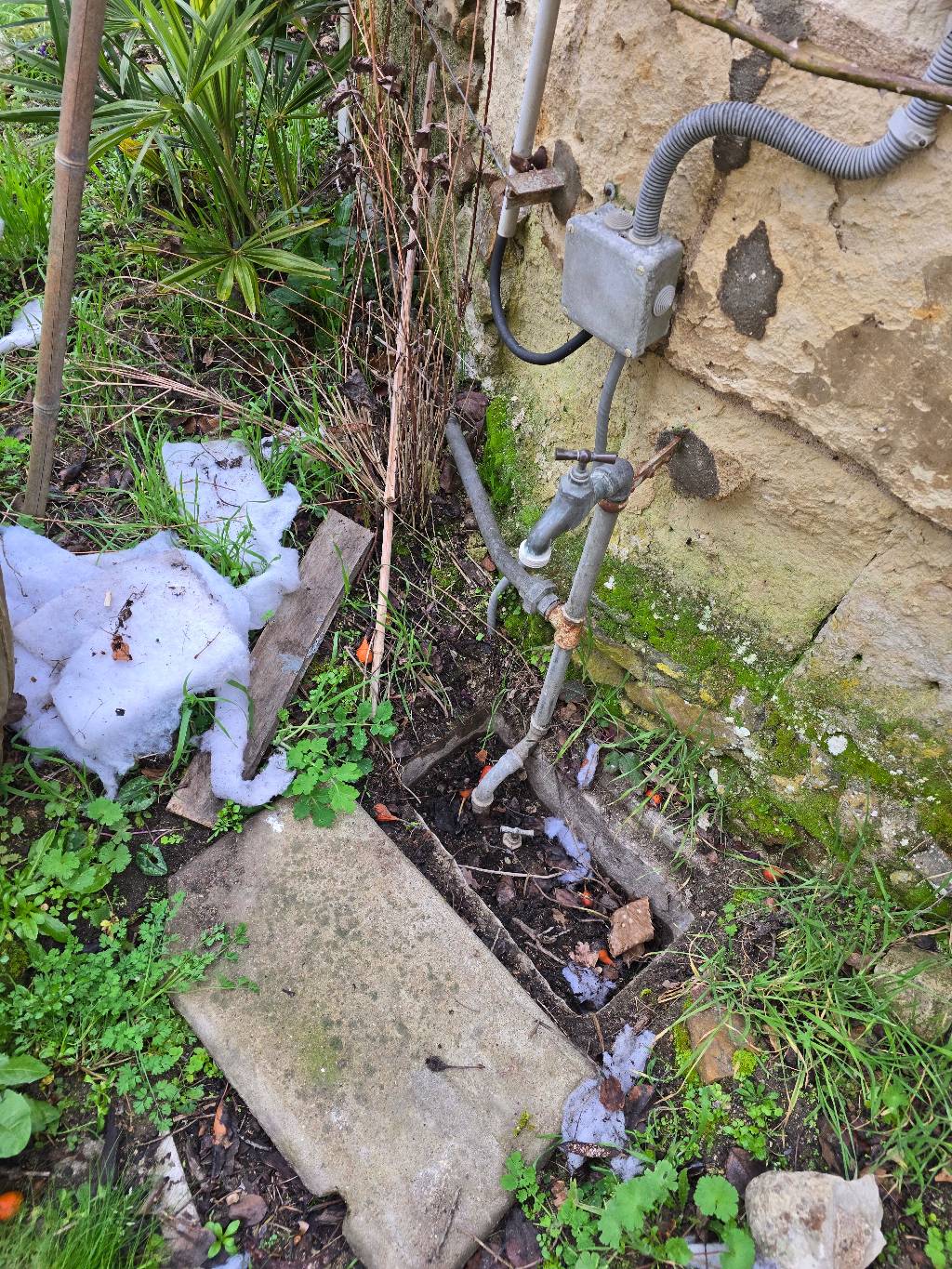 La surconsommation d’eau est principalement liée à plusieurs fuites présentes sur la canalisation extérieure en acier alimentant le jardin, celle-ci étant percée à plusieurs endroits sur le tronçon longeant le mur. La remise en état ou le remplacement de cette canalisation sera nécessaire. Le robinet de fermeture défectueux devra également être remplacé.